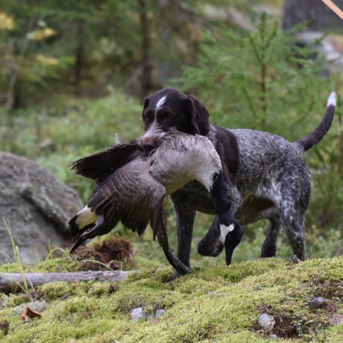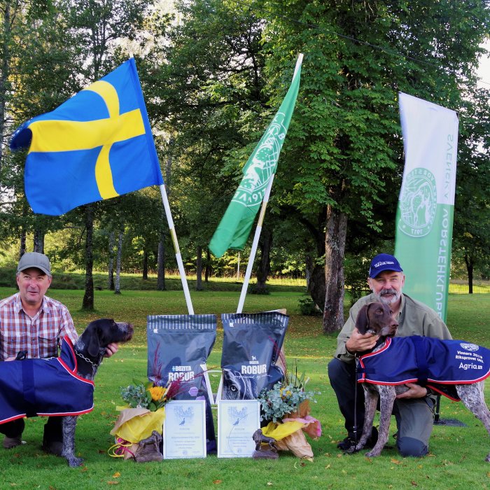 Vinnare av Riksprovets unghundsklass blev VALKIAN-AIDAN AJAX, korthårig vorsteh, ägare Owe Fredriksson, Nordmaling.