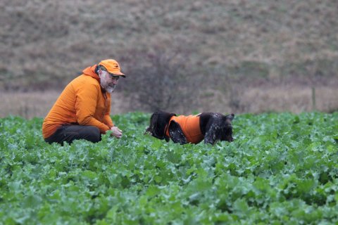 när det gällde fåglarnas beteende upprepades och på eftermiddagen lyckades hundarna få fast dom mer ordentligt. Det var då väldigt trevligt att se deras arbete.