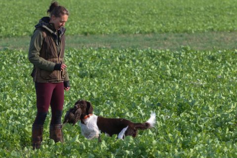 Eftermiddagens fältarbete genomfördes i Norrvidinge, med mycket varierat vilt. Strama fina stånd och friska avancer presenterades både på fasan, hare, räv och rådjur. Tyvärr blev avancen på rådjur lite lång och ljudlig. Men stramt fint stånd och frisk avance efter kommando från föraren.  Därtill så tog harintresset över för någon hund, så kvar till kastapport fanns två deltagare. Vilka klarade det med bravur.