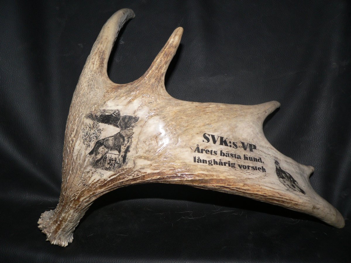 | Beskrivning | Älghorn med gravyr. Till mottagare utdelas ett diplom med fotografi av priset. |